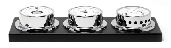 Het Barigo TEMPO Weerstation 386RFPO combineert barometer, quartz klok en thermo-/hygrometer in één elegant instrument. Het weerstation is ontwikkeld door Barigo en Made in Germany, en heeft een verchroomde behuizing gemonteerd op een zwart gelakt mahonie houten wandbord, wat een luxe en klassieke uitstraling geeft.